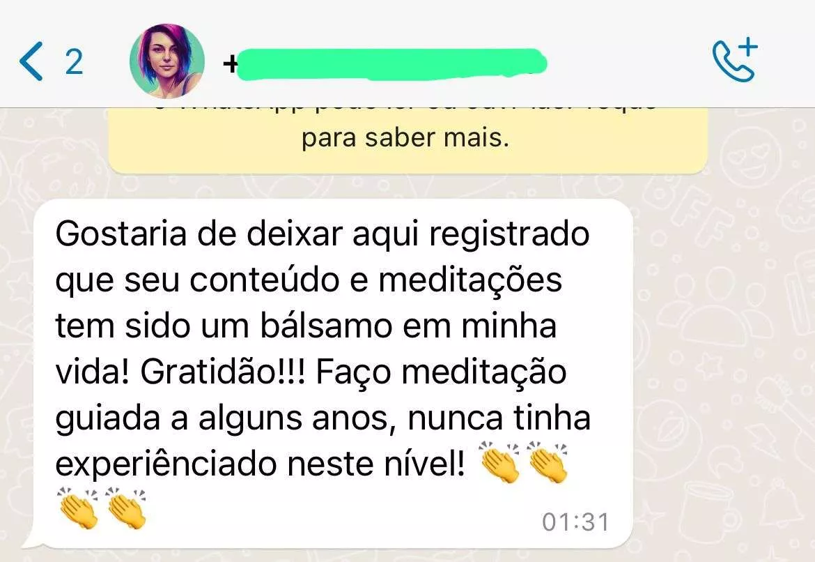 E ao final desta experiência transformadora por si só você ainda terá acesso a um BÔNUS incrível para que você continue motivado em sua jornada, você receberá um convite gratuito para entrar para o nosso *Grupo de Meditação Quinzenal ao Vivo pelo ZOOM durante 12 meses!